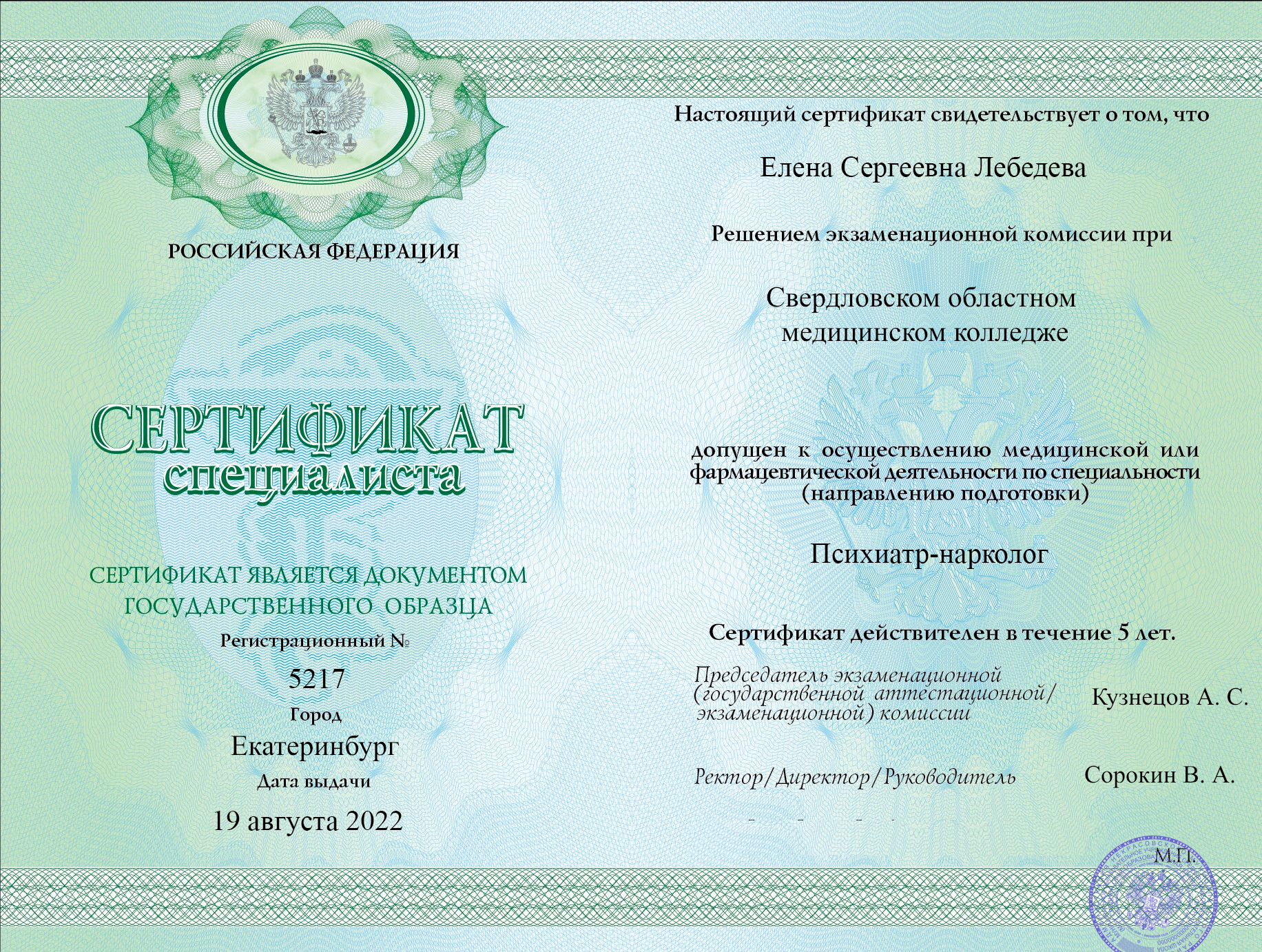 Елена Сергеевна Лебедева врач нарколог клиники доктора Стукаловой в Сергаче